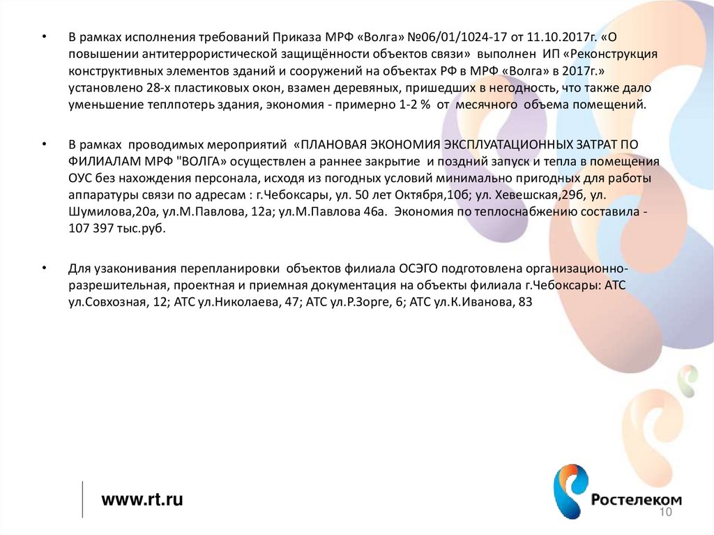 ИТОГИ РАБОТЫ АДМИНИСТРАТИВНО ХОЗЯЙСТВЕННОГО УПРАВЛЕНИЯ ФИЛИАЛА ВЧУВАШСКОЙ РЕСПУБЛИКЕ В 2017 ГОДУ.