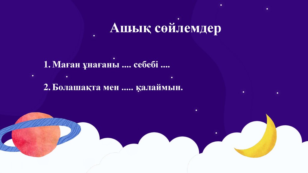 Ашық сөйлемдер1. Маған ұнағаны .... себебі ....