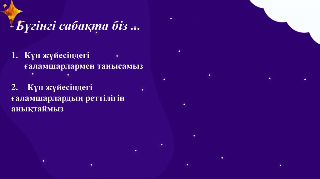 - Бүгінгі сабақта біз ...1. Күн жүйесіндегі