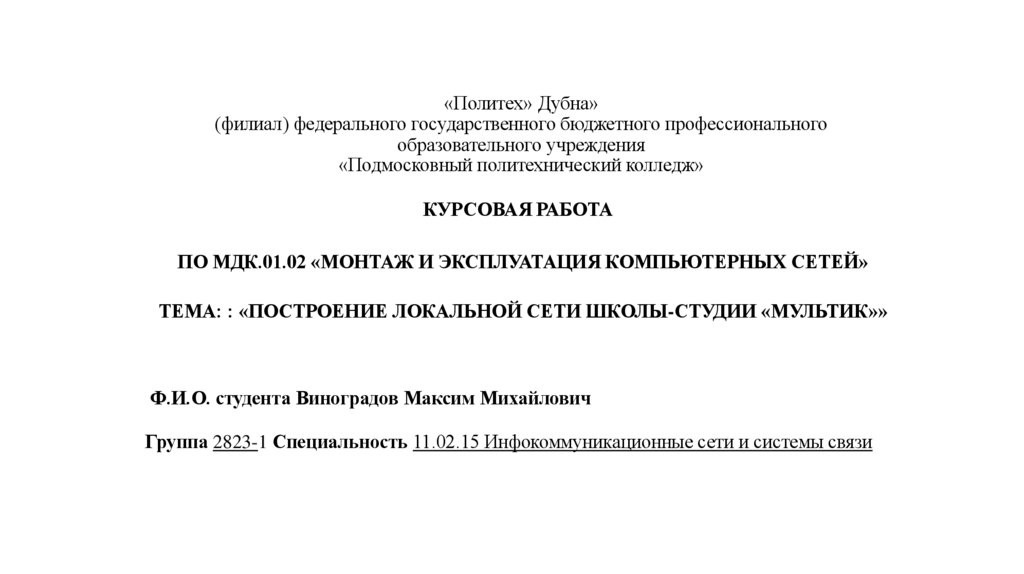 Группа 2823-1 Специальность 11.02.15 Инфокоммуникационные сети и системы связи