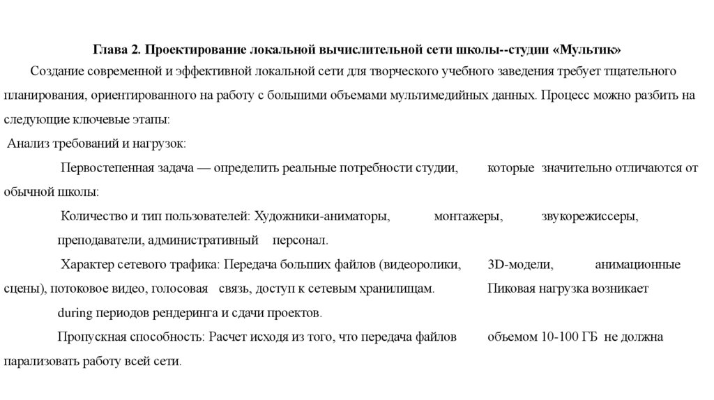Глава 2. Проектирование локальной вычислительной сети школы--студии «Мультик»Создание современной и эффективной локальной сети для творческого учебного заведения требует тщательного
