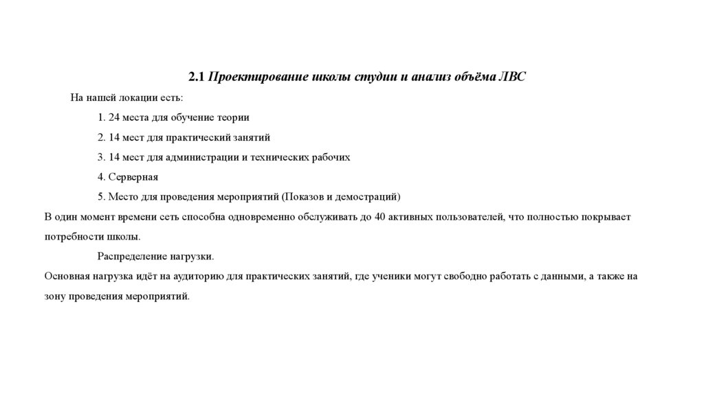 2.1 Проектирование школы студии и анализ объёма ЛВСНа нашей локации есть: