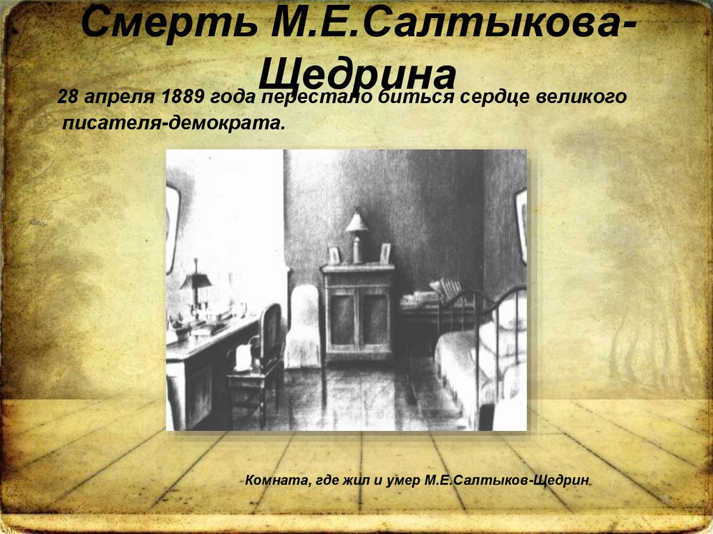 Смерть М.Е.СалтыковаЩедрина28 апреля 1889 года перестало биться сердце великого