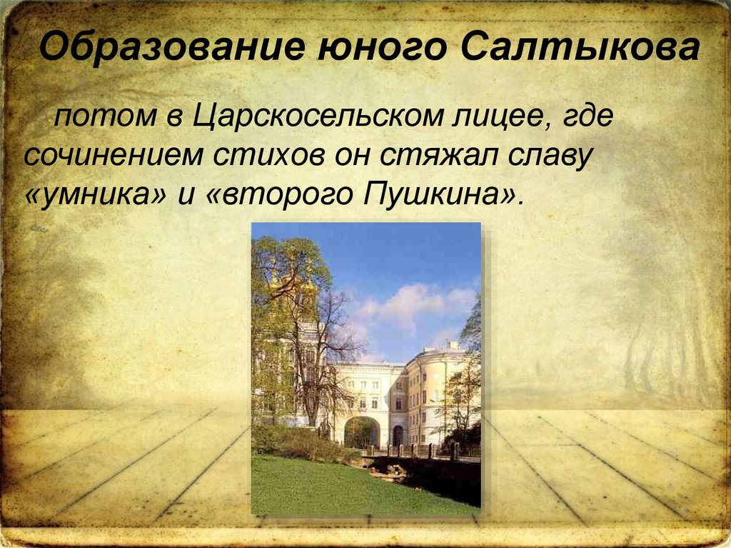 Образование юного Салтыковапотом в Царскосельском лицее, где