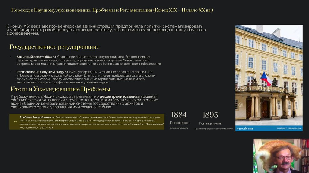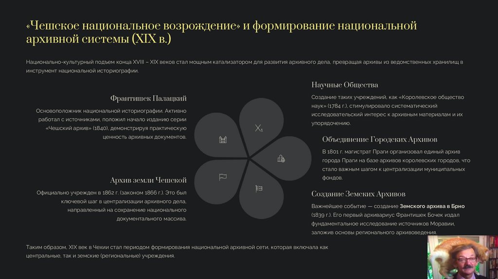 Таким образом, XIX век в Чехии стал периодом формирования национальной архивной сети, которая включала как