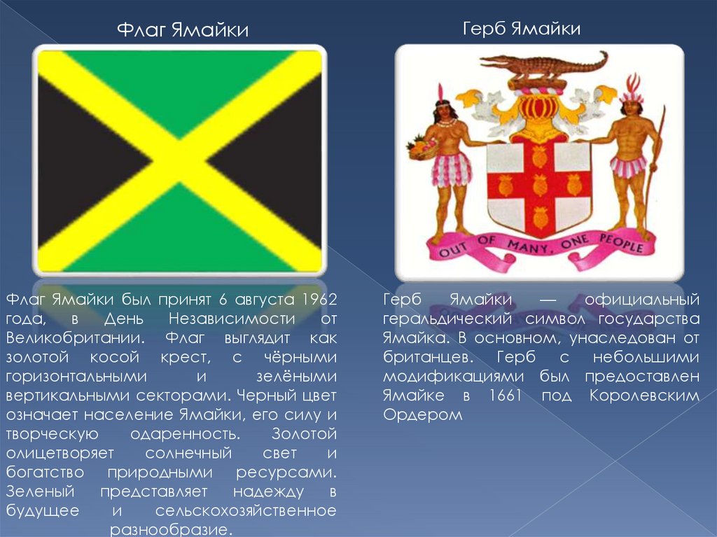 Флаг ЯмайкиФлаг Ямайки был принят 6 августа 1962