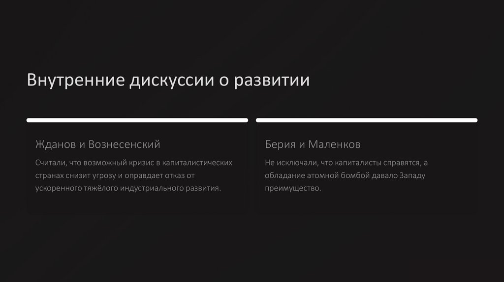 Внутренние дискуссии о развитииЖданов и Вознесенский