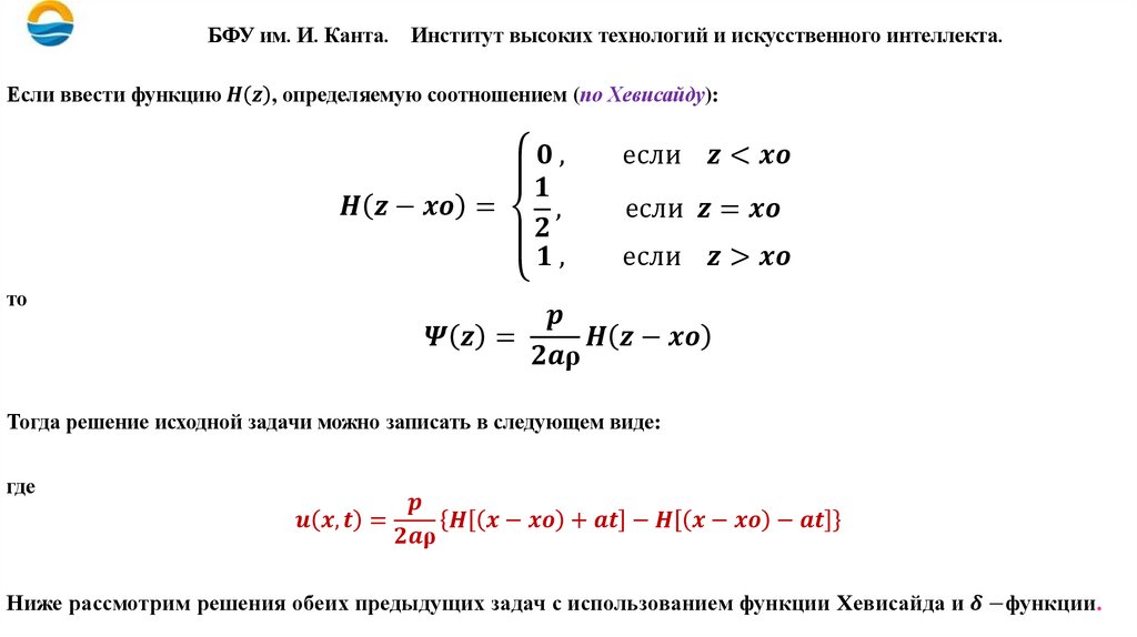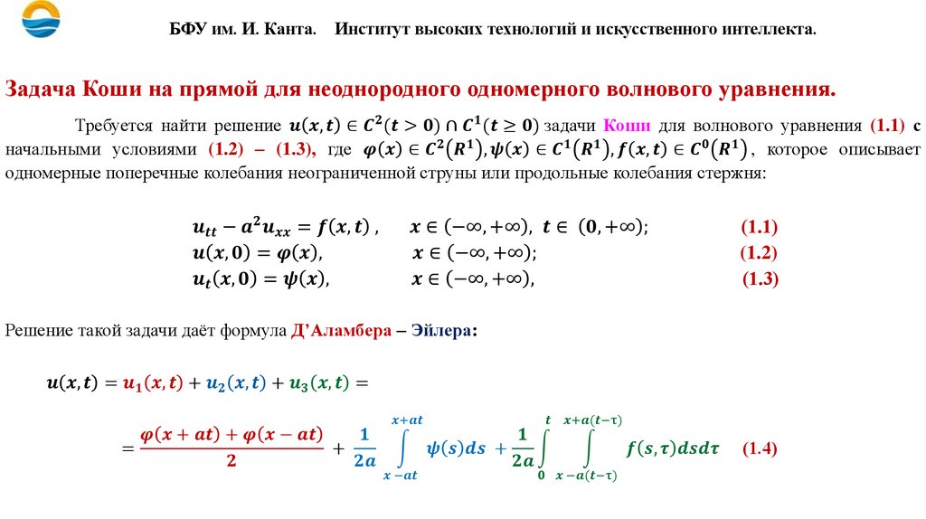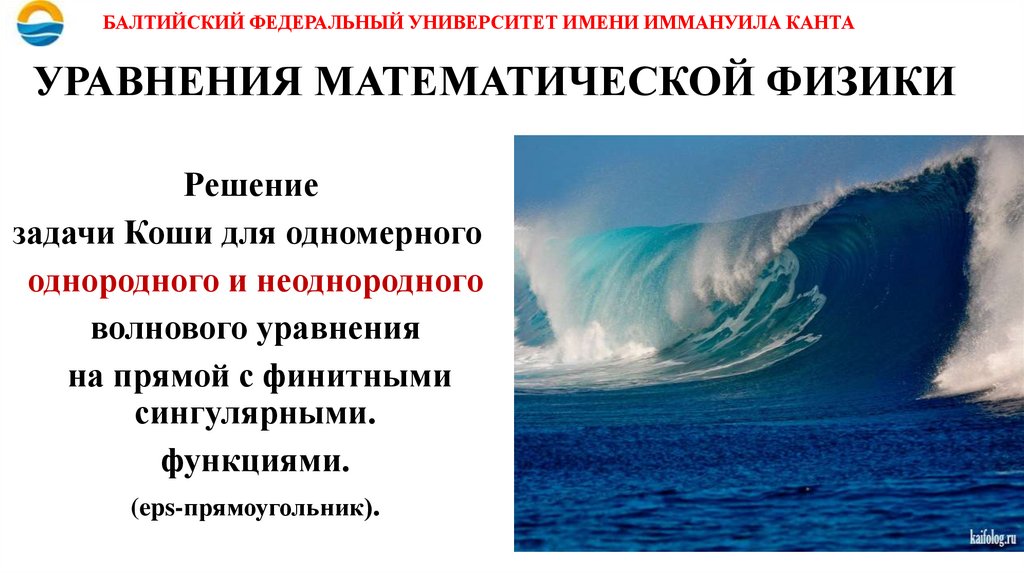 БАЛТИЙСКИЙ ФЕДЕРАЛЬНЫЙ УНИВЕРСИТЕТ ИМЕНИ ИММАНУИЛА КАНТАУРАВНЕНИЯ МАТЕМАТИЧЕСКОЙ ФИЗИКИ