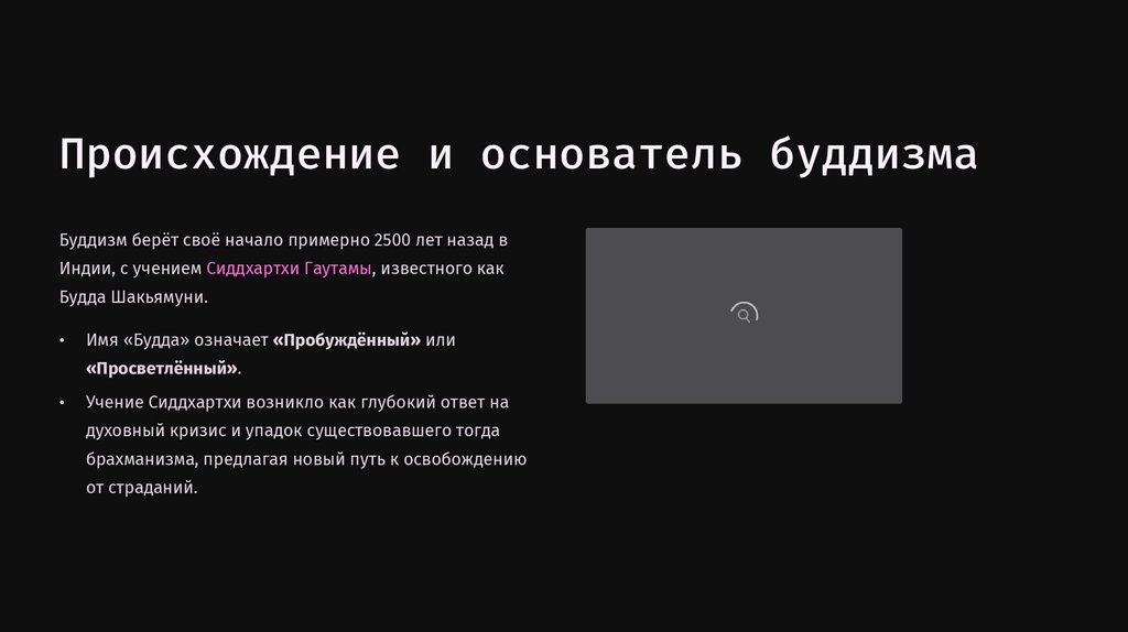 Происхождение и основатель буддизмаБуддизм берёт своё начало примерно 2500 лет назад в