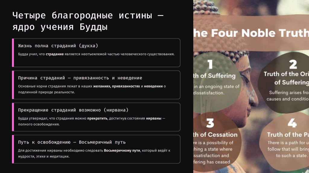Будда учил, что страдание является неотъемлемой частью человеческого существования.