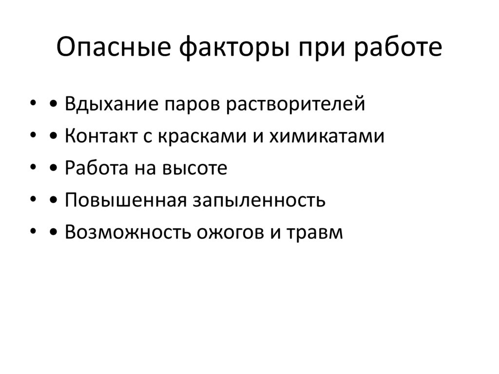 Опасные факторы при работе• • Вдыхание паров растворителей