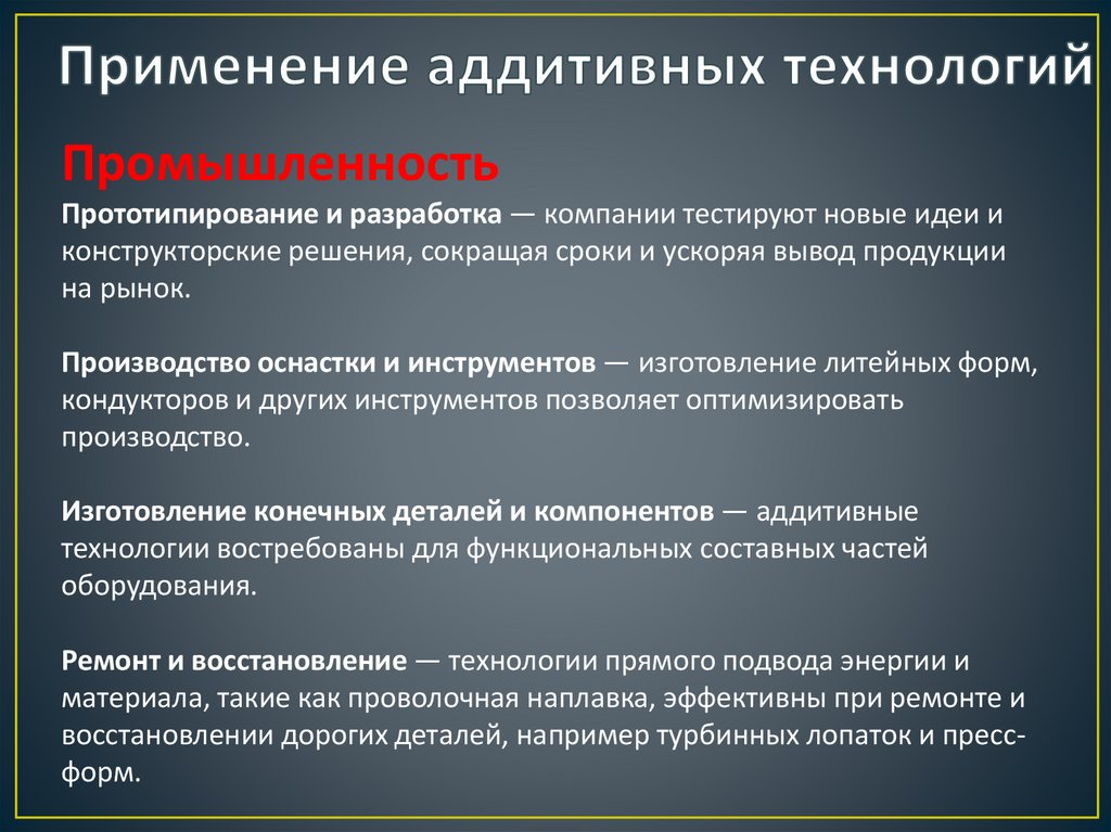 • Аддитивные технологии (Additive Manufacturing) — методсоздания трехмерных объектов, деталей или вещей путем