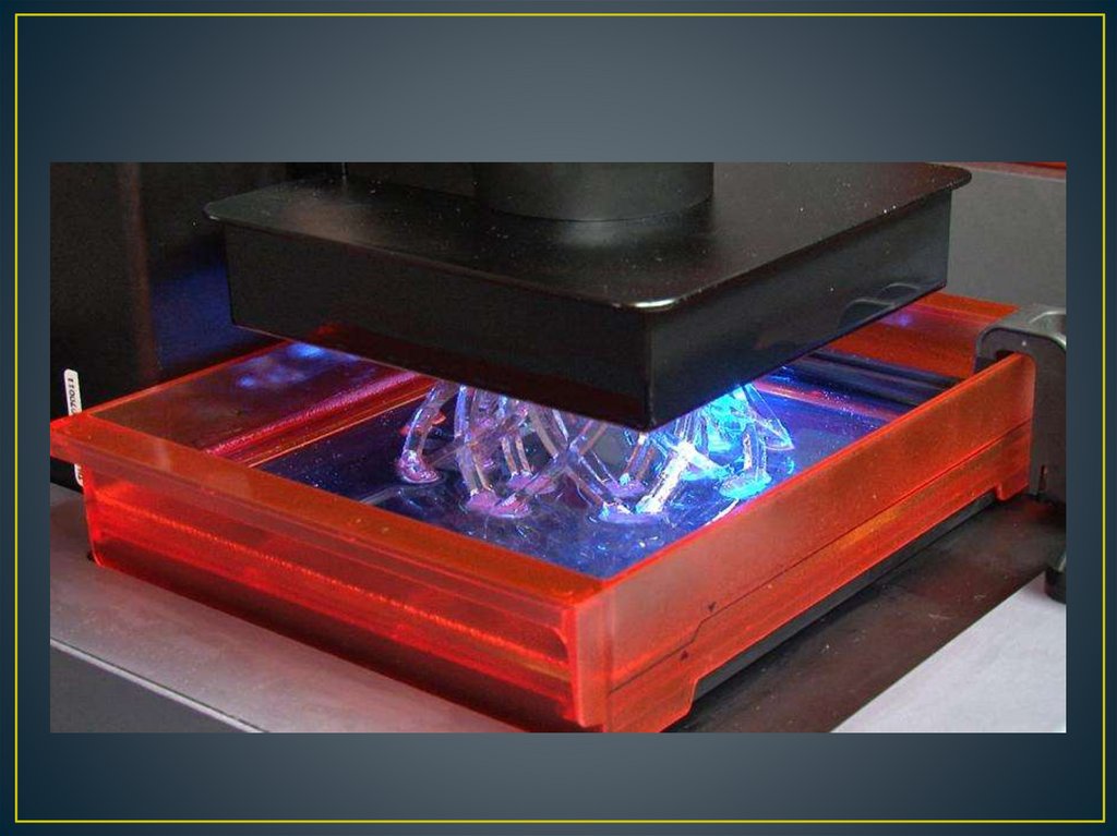• Лазерная стереолитография (Stereolithography,LSA) — самая первая технология 3D-печати, когда