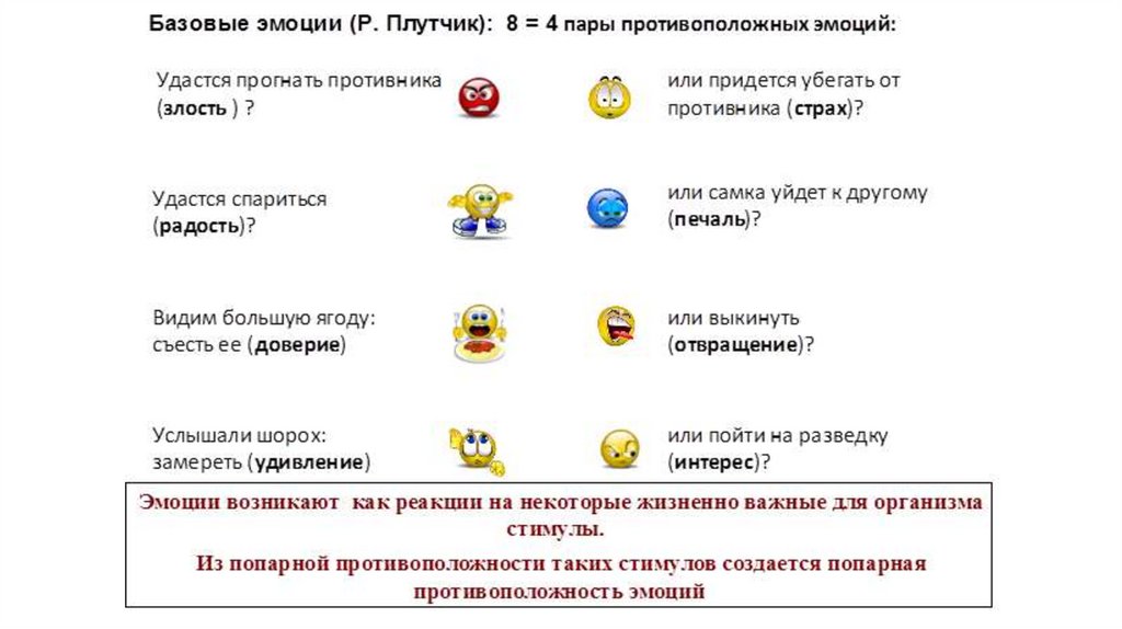 15. Роберт Плутчик классифицирует эмоции на основе того, что они - механизмы коммуникации и выживания, основанные на эволюционной