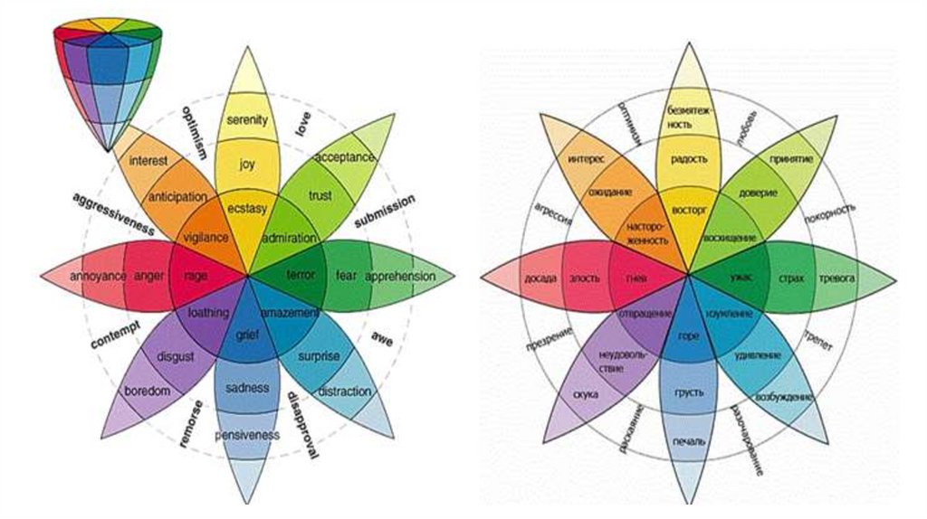 переходят в чувства или выражают их;3) чувства проявляются внутри, а эмоции снаружи;