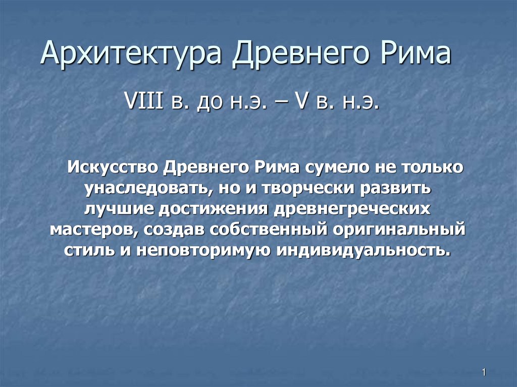 VIII в. до н.э. – V в. н.э.Искусство Древнего Рима сумело не только