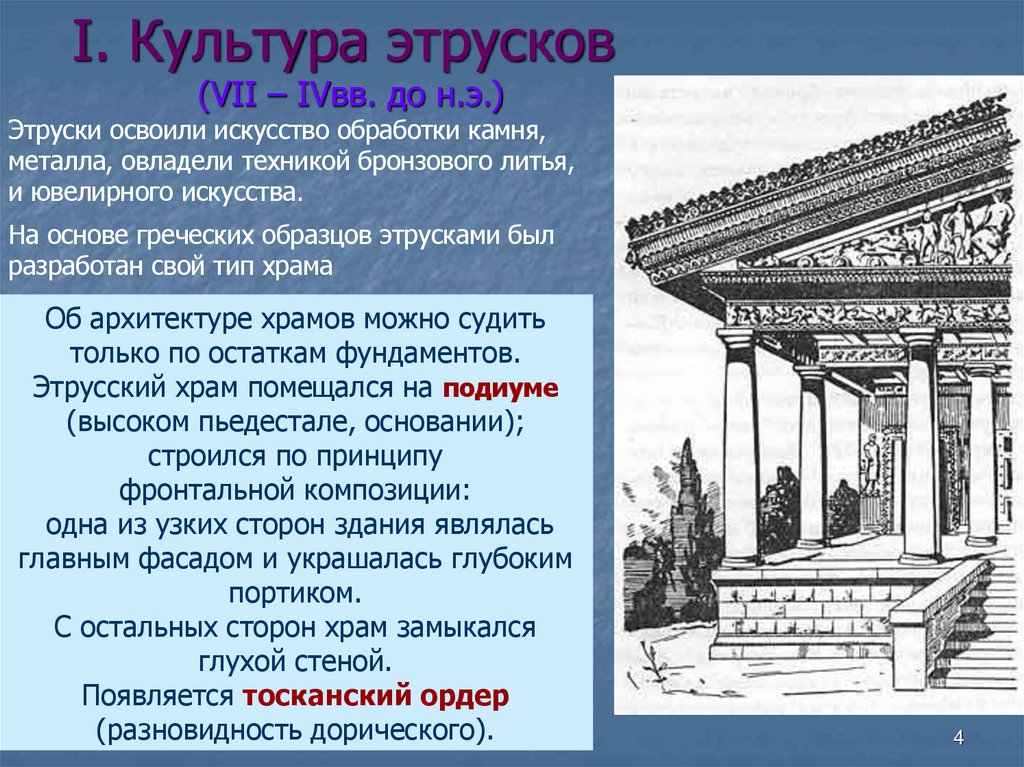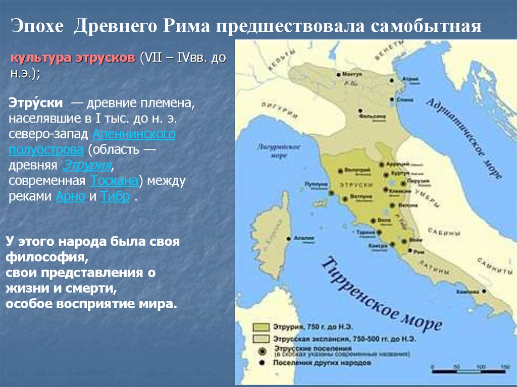 Эпохе Древнего Рима предшествовала самобытнаякультура этрусков (VII – IVвв. до