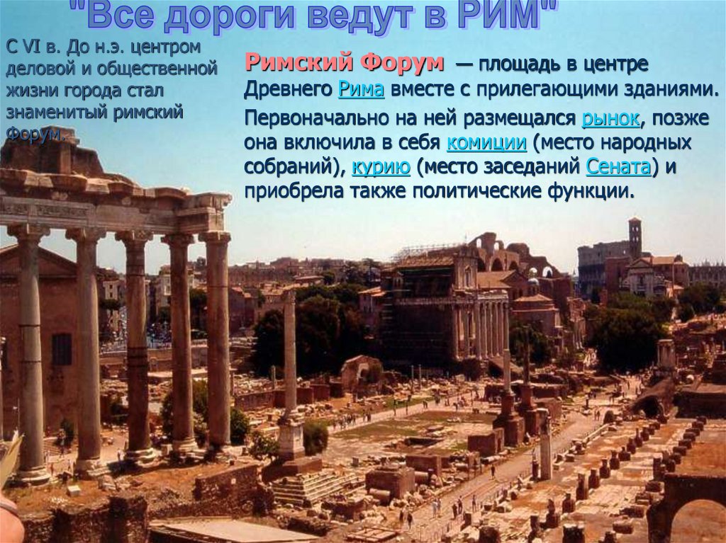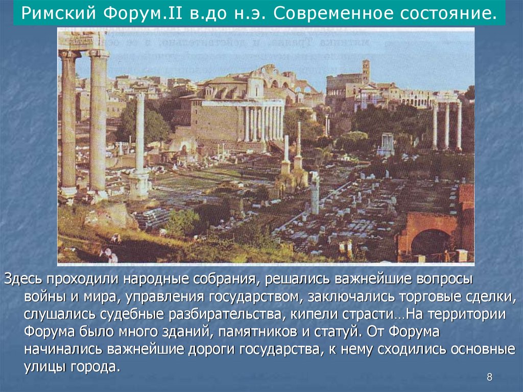 Римский Форум.II в.до н.э. Современное состояние.Здесь проходили народные собрания, решались важнейшие вопросы