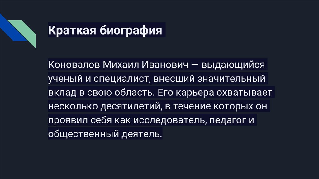 Краткая биографияКоновалов Михаил Иванович — выдающийся