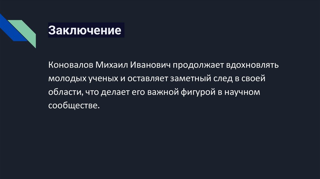 ЗаключениеКоновалов Михаил Иванович продолжает вдохновлять