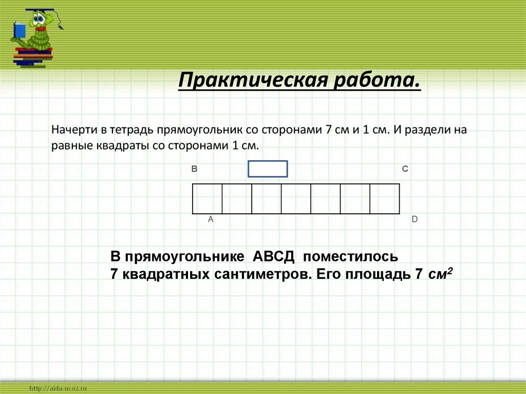 Практическая работа.Начерти в тетрадь прямоугольник со сторонами 7 см и 1 см. И раздели на