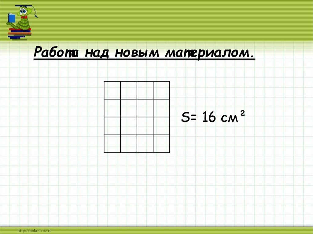 Работа над новым материалом.S= 16 см²