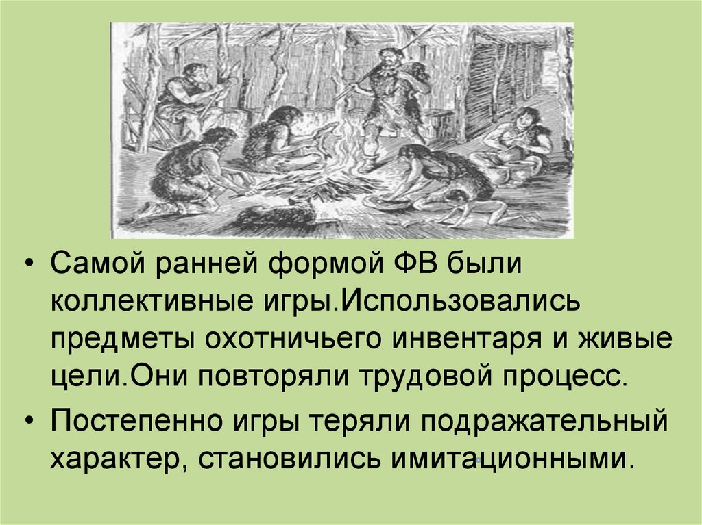 • Самой ранней формой ФВ быликоллективные игры.Использовались