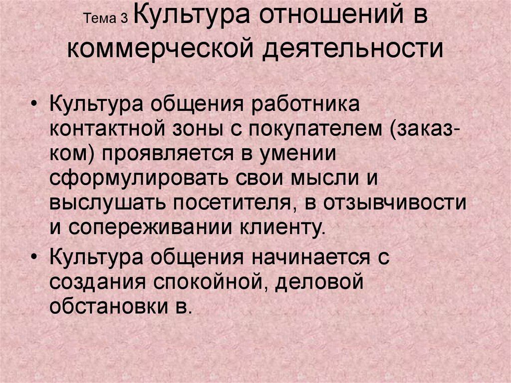 1. Тема 3 Культура отношений в коммерческой деятельности