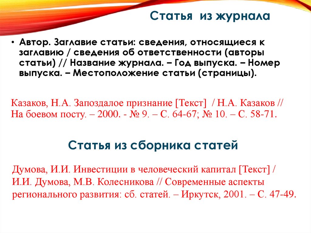 Статья из журнала• Автор. Заглавие статьи: сведения, относящиеся к