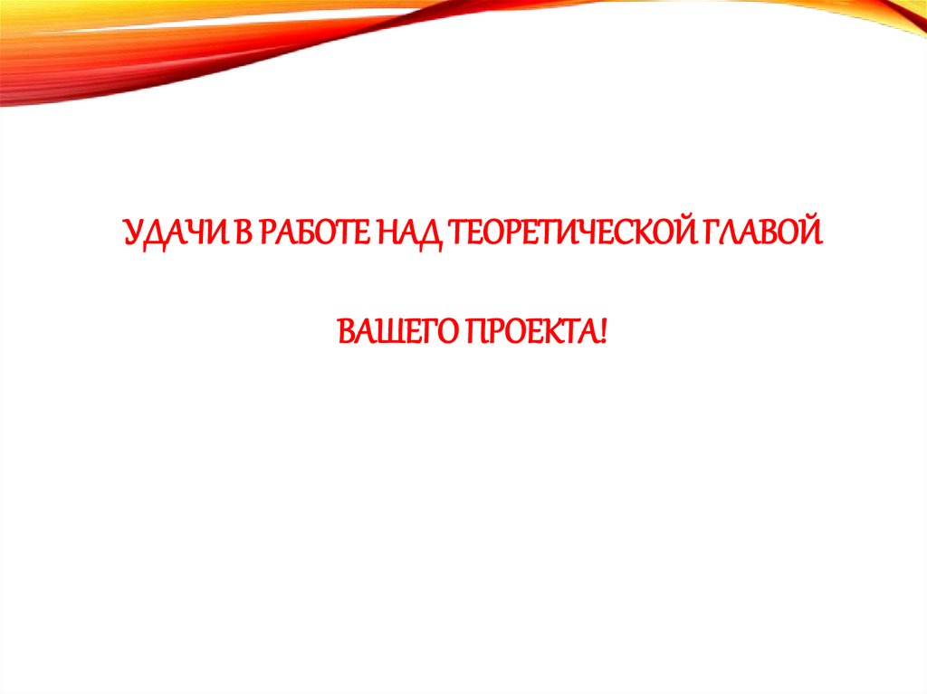 УДАЧИ В РАБОТЕ НАД ТЕОРЕТИЧЕСКОЙ ГЛАВОЙВАШЕГО ПРОЕКТА!