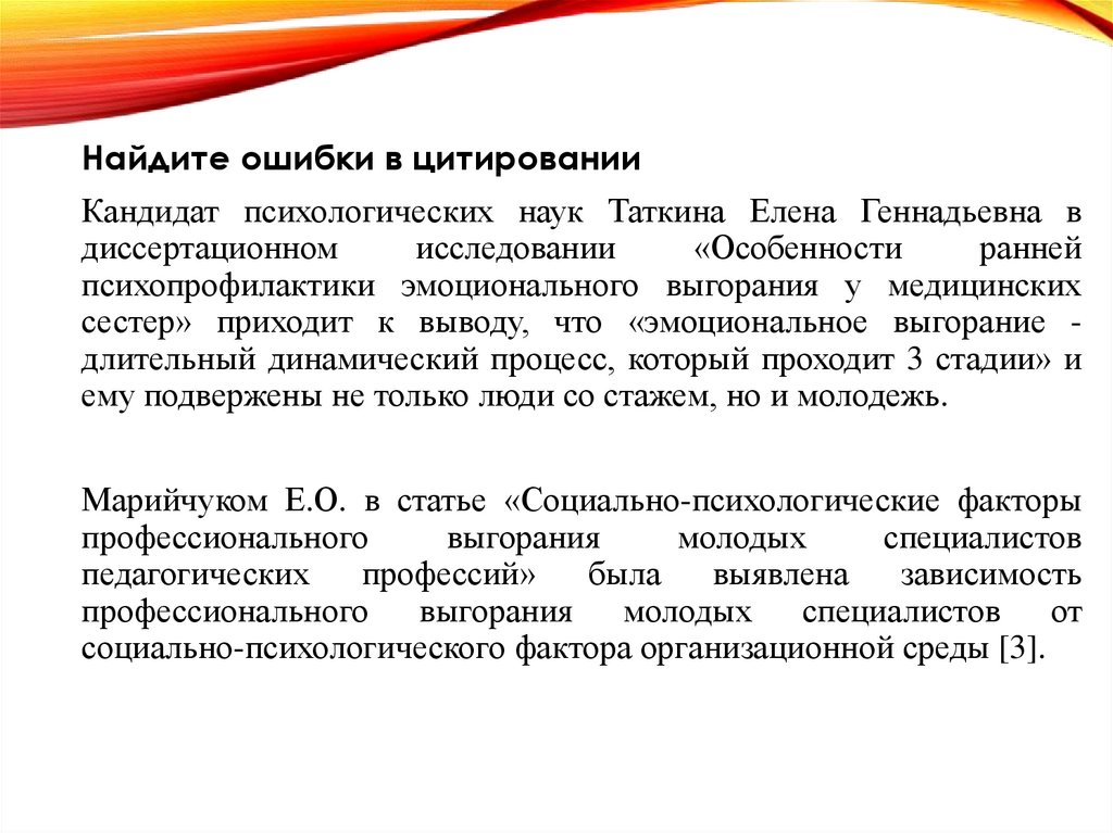 Найдите ошибки в цитированииКандидат психологических наук Таткина Елена Геннадьевна в