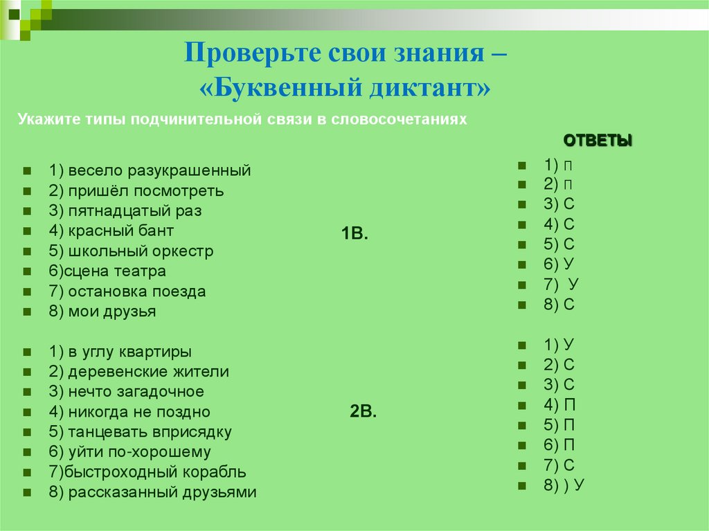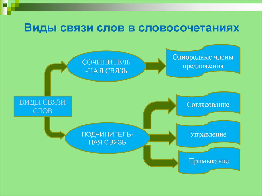 Виды связи слов в словосочетанияхСОЧИНИТЕЛЬ