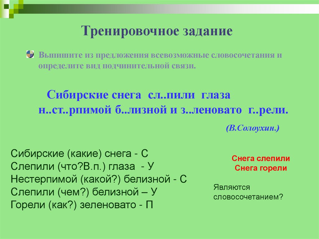 Тренировочное заданиеВыпишите из предложения всевозможные словосочетания и