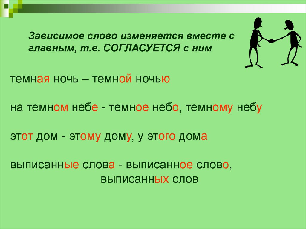Зависимое слово изменяется вместе сглавным, т.е. СОГЛАСУЕТСЯ с ним