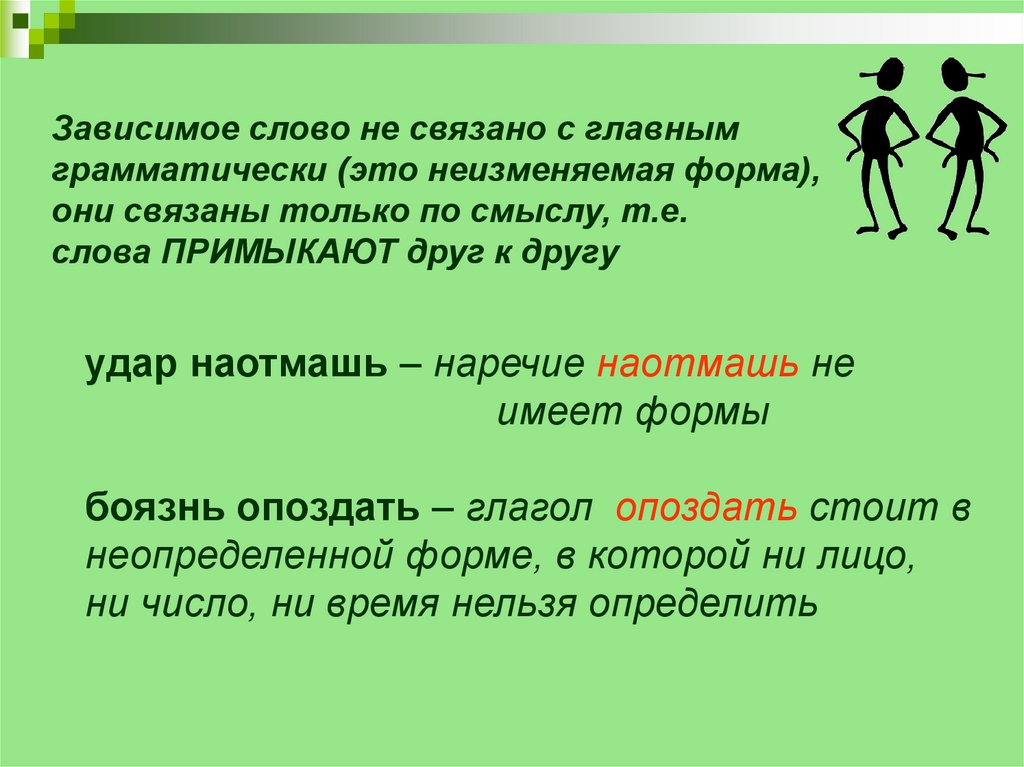 Зависимое слово не связано с главнымграмматически (это неизменяемая форма),