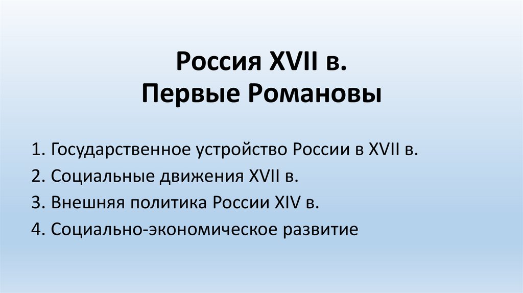 1. Государственное устройство России в XVII в.2. Социальные движения XVII в.