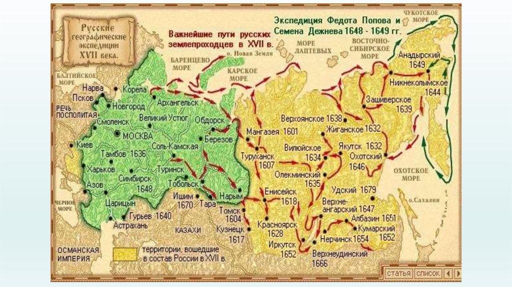 1697 г. – В. Атласов исследовал и присоединил Камчатку