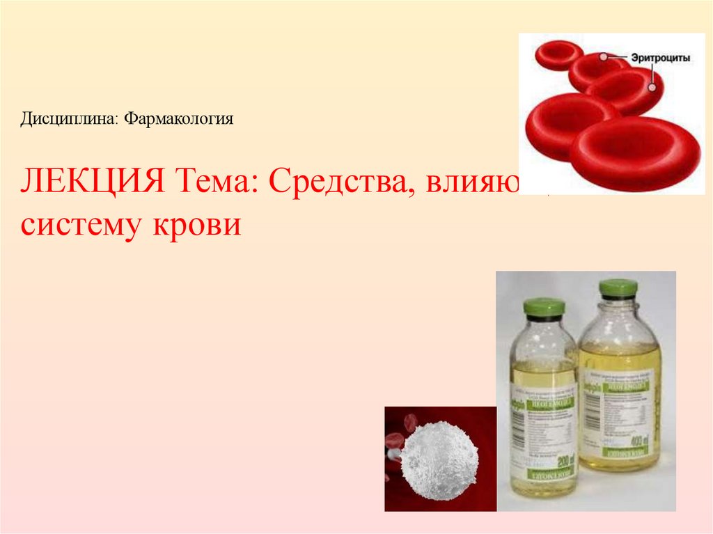 Дисциплина: ФармакологияЛЕКЦИЯ Тема: Средства, влияющие на