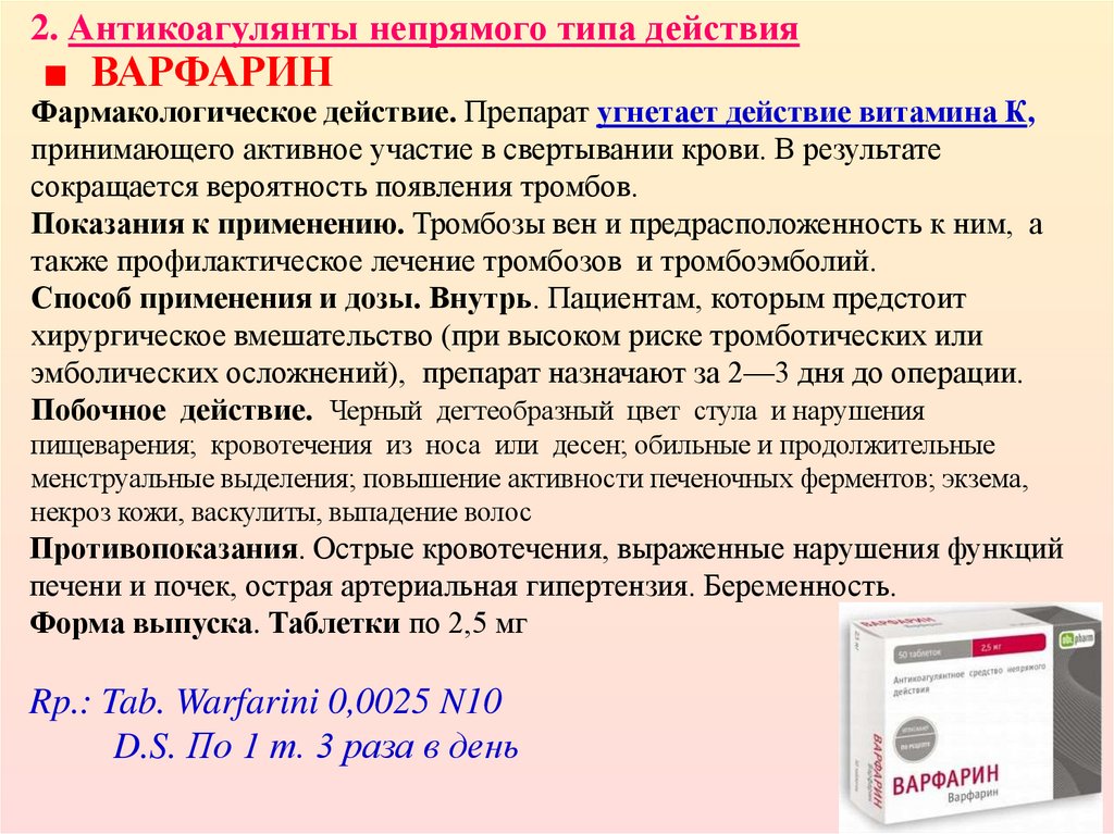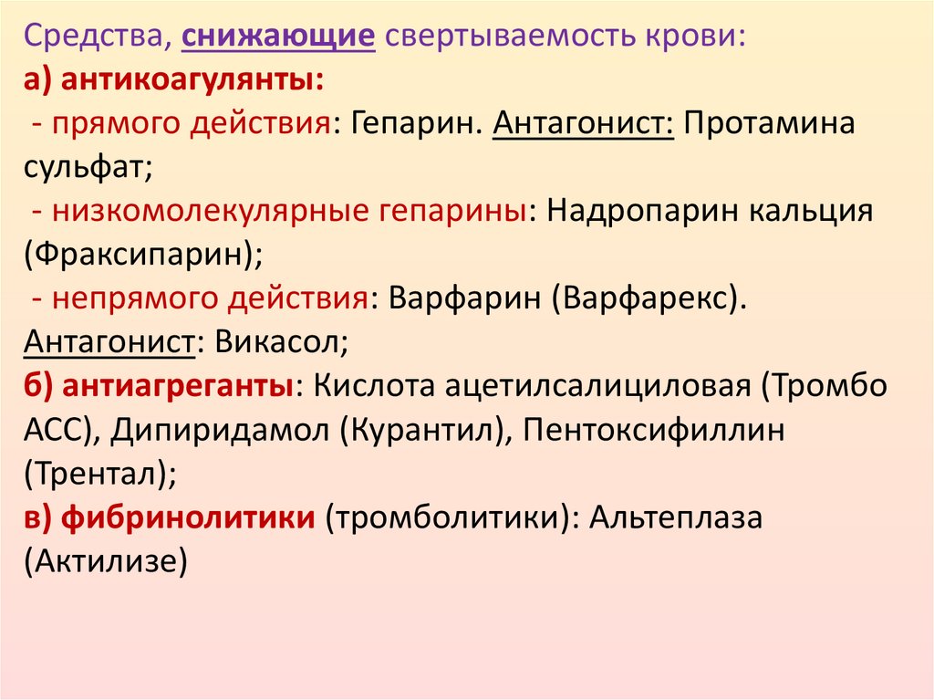 тромбозов, тромбофлебитов, эндартериита и т.п.