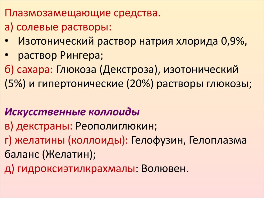 плазмозамещающее, дезинтоксикационное, противошоковое,
