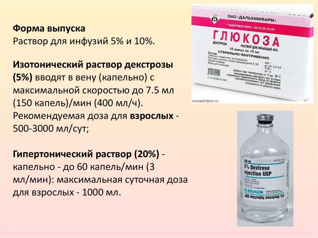Форма выпускаРаствор для инфузий 5% и 10%.