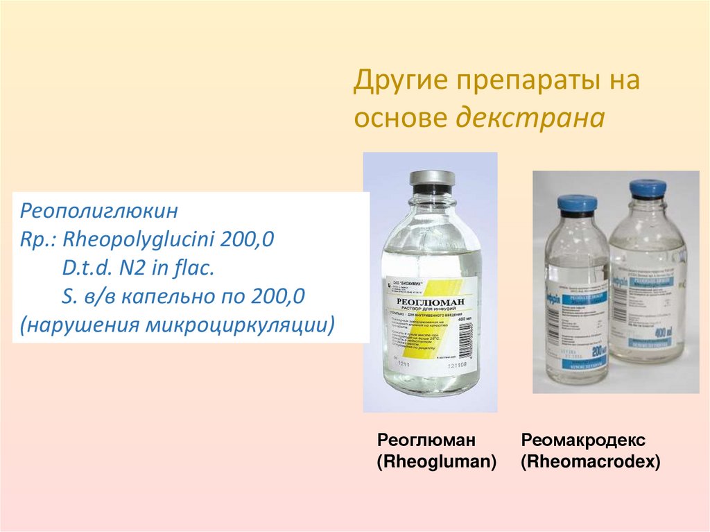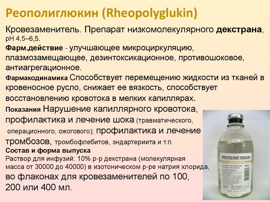 Реополиглюкин (Rheopolyglukin)Кровезаменитель. Препарат низкомолекулярного декстрана,