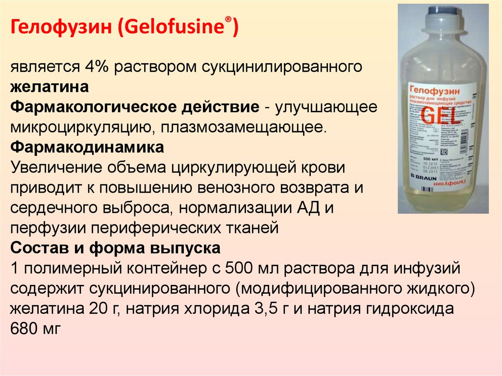Гелофузин (Gelofusine®)является 4% раствором сукцинилированного