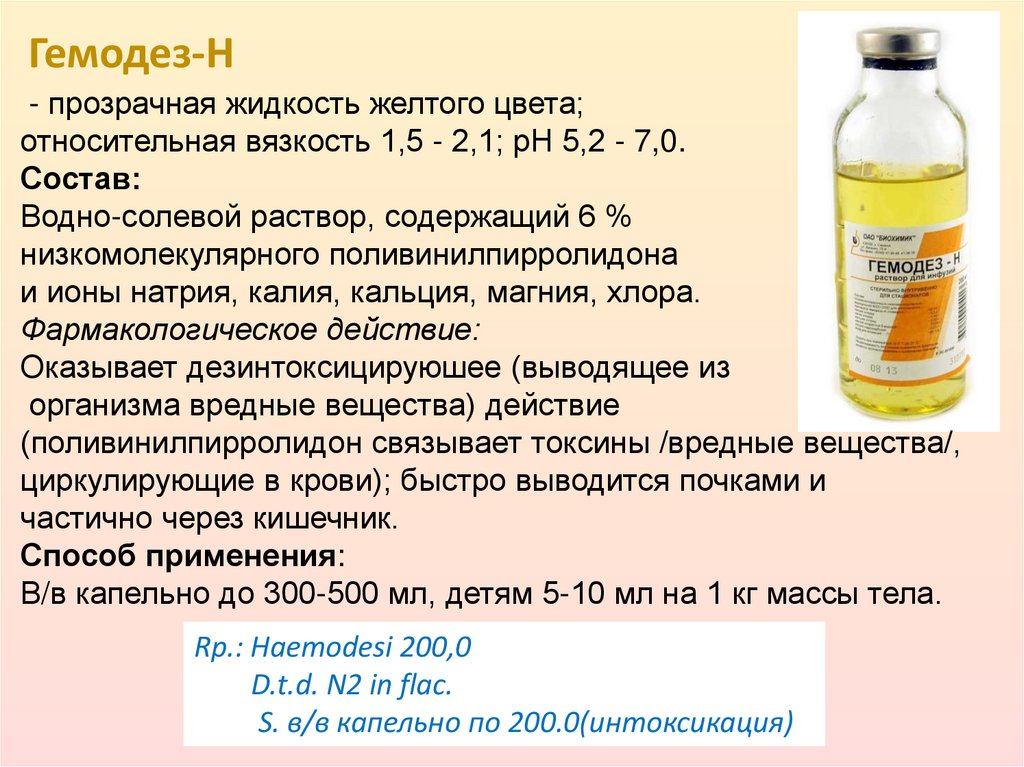 Гемодез-Н- прозрачная жидкость желтого цвета;