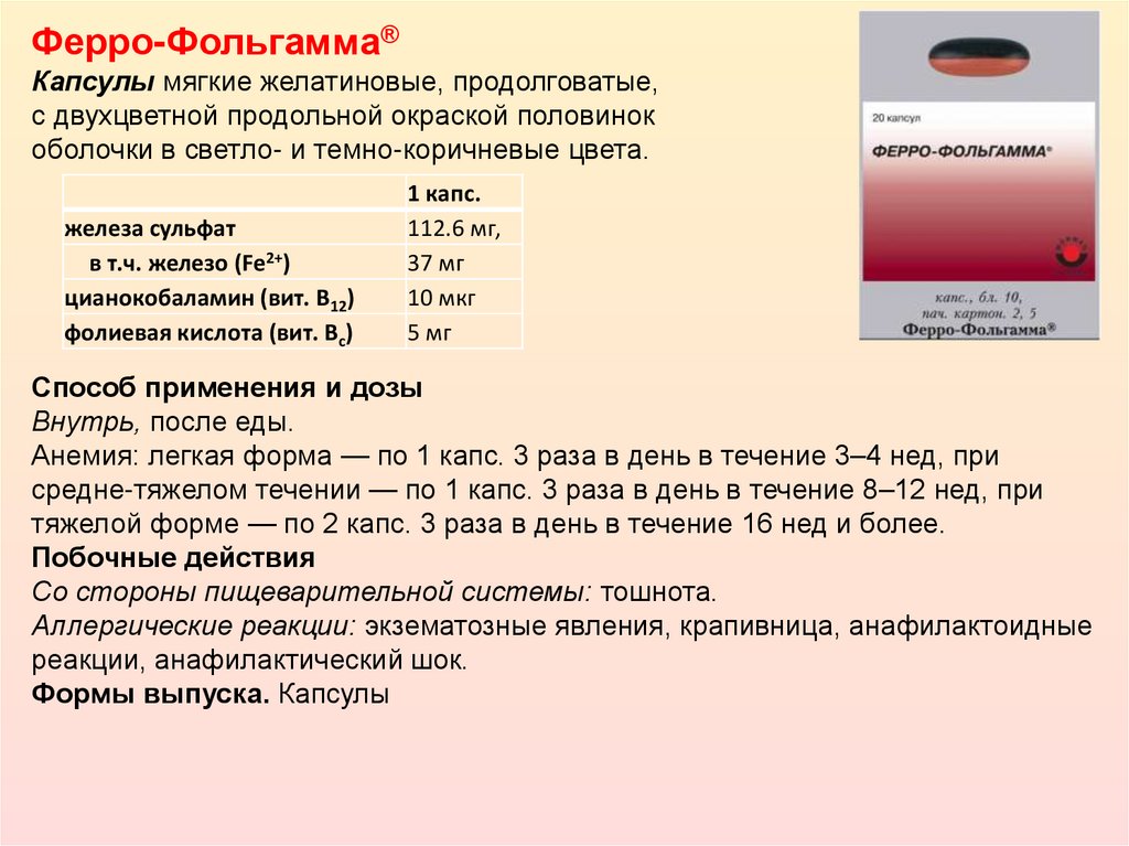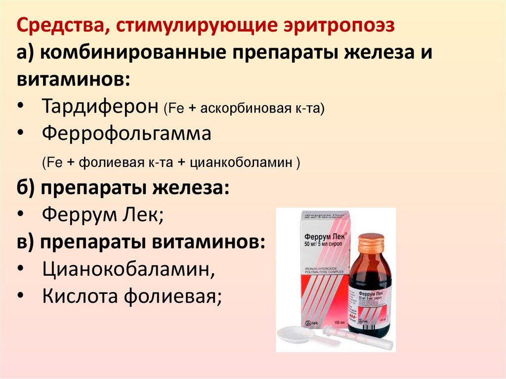 Средства, стимулирующие эритропоэза) комбинированные препараты железа и