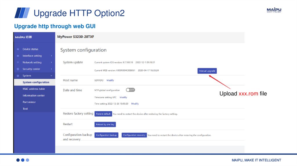 Step 1: Upgrade package (image, bootloader, devinfo, web):