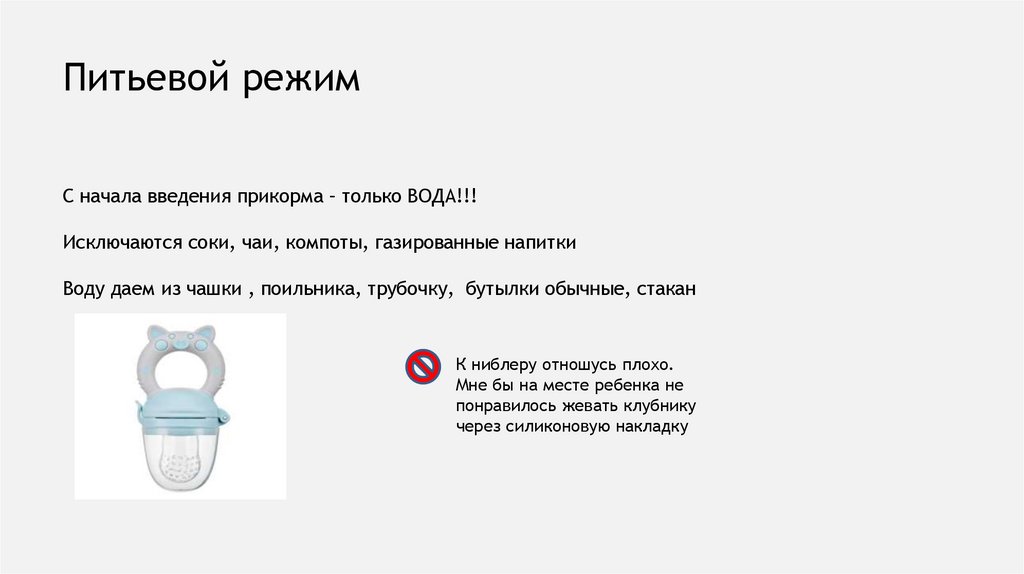 Питьевой режимС начала введения прикорма – только ВОДА!!!