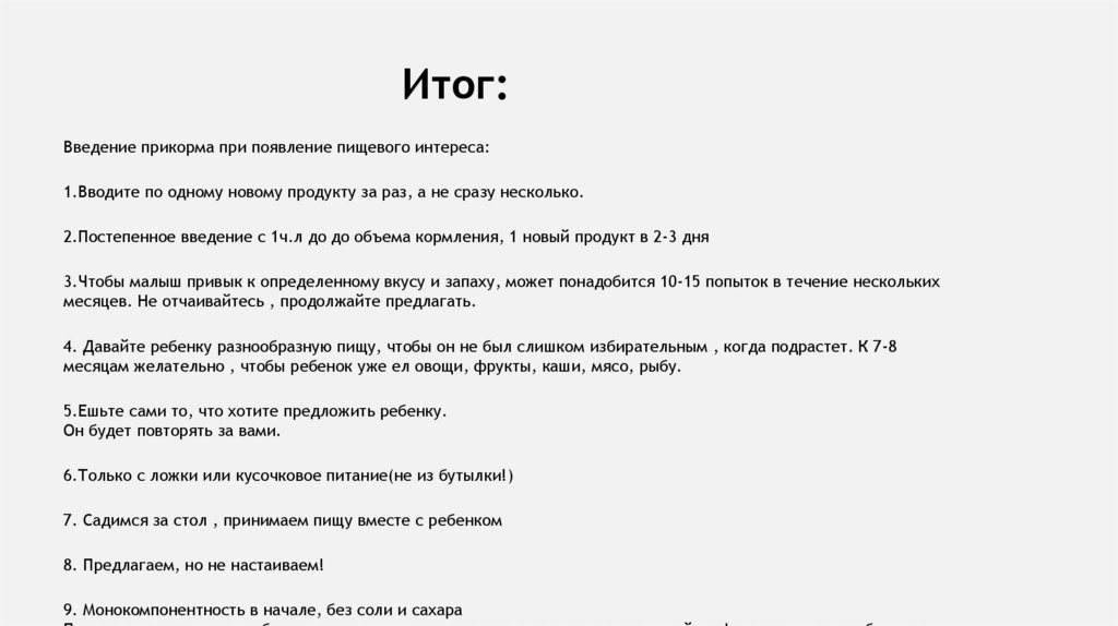 6.Только с ложки или кусочковое питание(не из бутылки!)