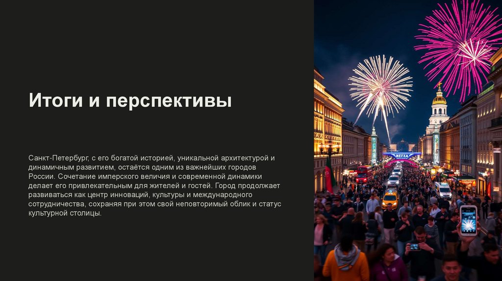 Итоги и перспективыСанкт-Петербург, с его богатой историей, уникальной архитектурой и