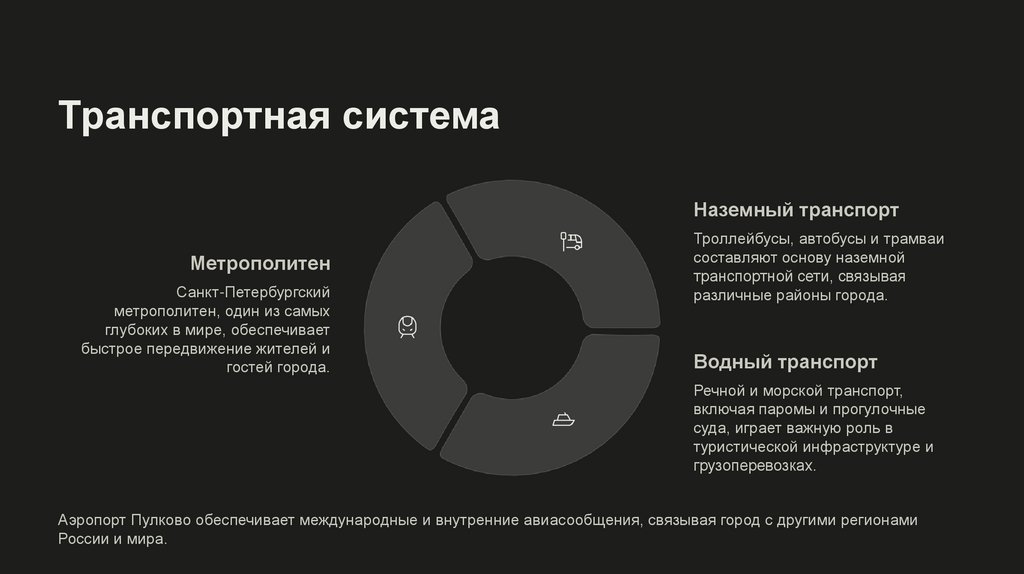 Аэропорт Пулково обеспечивает международные и внутренние авиасообщения, связывая город с другими регионами
